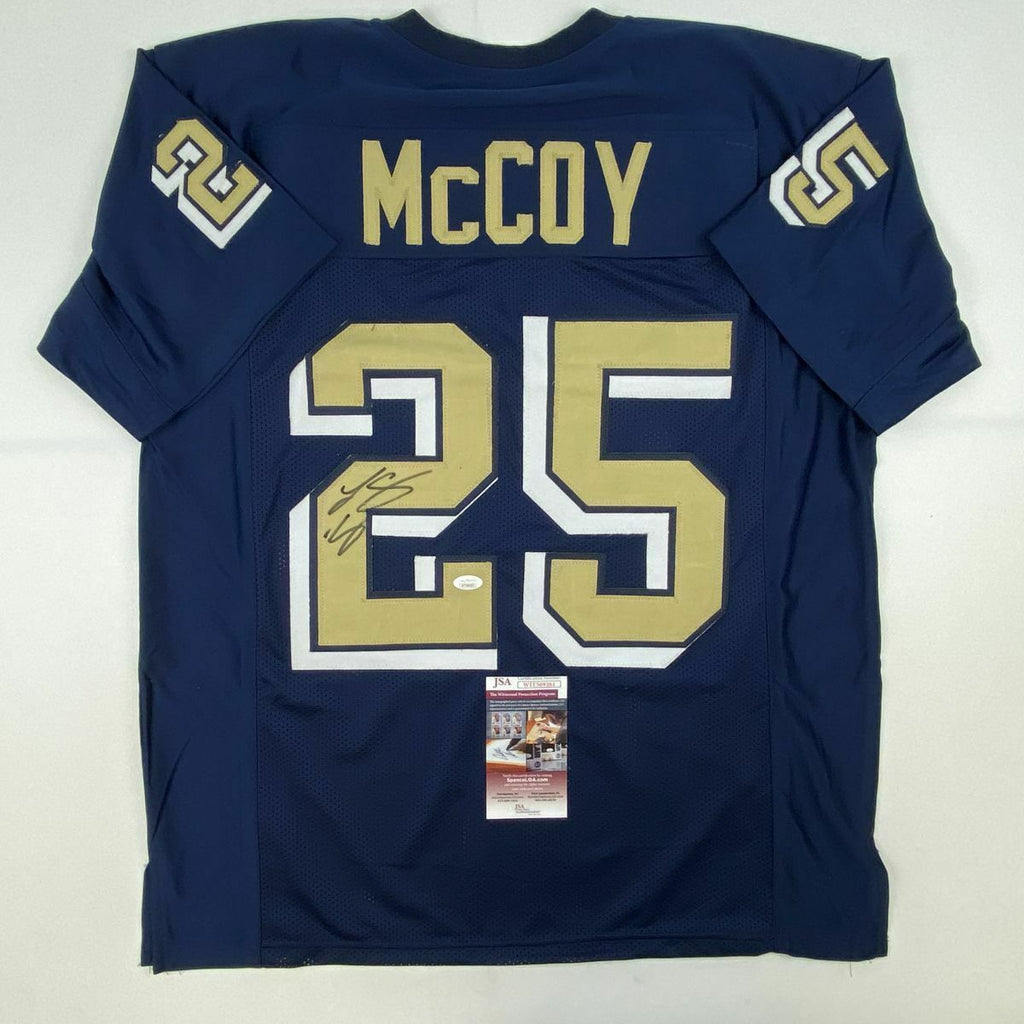 Autographed/Signed LESEAN MCCOY Pittsburgh Blue College Football Jersey JSA COA This is a custom jersey and was not manufactured by or in any manner associated with any professional sports league or manufacturer. This custom jersey carries no professional sports league designation. The item is intended to be an autographed collectible. Reference of team in the title is to allow the purchaser a point of association. The custom jersey displays the name, number and authenticated signature of the player. This item in no way is affiliated with or connected to any professional sports organization. The autograph, as always is guaranteed to be authentic and has been certified as authentic by a third-party, trusted authenticator. Size is XL unless otherwise noted.