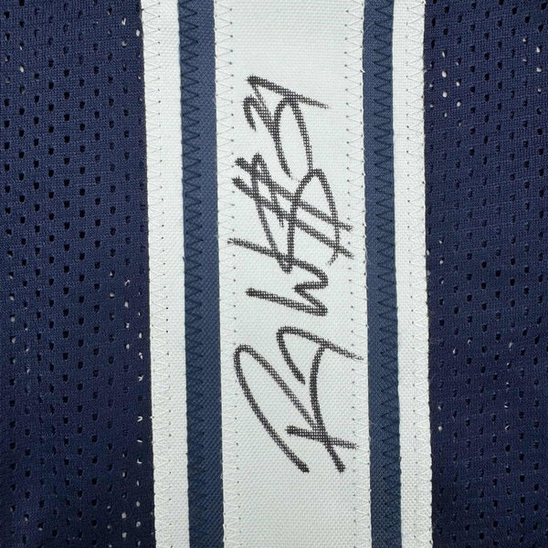 Autographed/Signed Roy Williams Dallas Blue Football Jersey JSA COA Jersey has no brand names or logos. This is a custom jersey and was not manufactured by or in any manner associated with any professional sports league or manufacturer. This custom jersey carries no professional sports league designation. The item is intended to be an autographed collectible. The custom jersey displays the name and number of the player. This item in no way is affiliated with or connected to any professional sports organization. Size is XL.