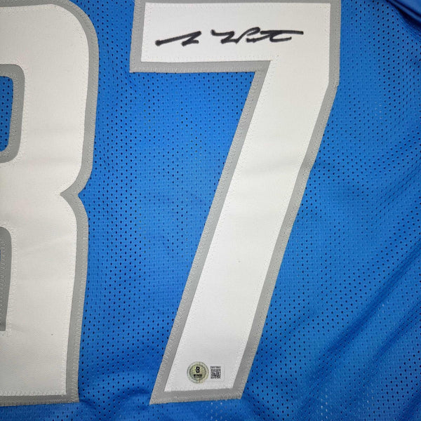 Autographed/Signed Sam LaPorta Detroit Blue Football Jersey Beckett BAS COA