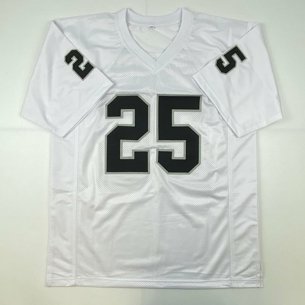 Autographed/Signed Trevon Moehrig Las Vegas Oakland White Jersey JSA COA Jersey has no brand names or logos. This is a custom jersey and was not manufactured by or in any manner associated with any professional sports league or manufacturer. This custom jersey carries no professional sports league designation. The item is intended to be an autographed collectible. The custom jersey displays the name and number of the player. This item in no way is affiliated with or connected to any professional sports organization. Size is XL.