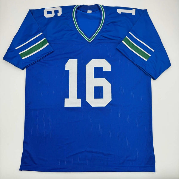 Autographed/Signed Tyler Lockett Seattle Blue Retro Football Jersey JSA COA Jersey has no brand names or logos. This is a custom jersey and was not manufactured by or in any manner associated with any professional sports league or manufacturer. This custom jersey carries no professional sports league designation. The item is intended to be an autographed collectible. The custom jersey displays the name and number of the player. This item in no way is affiliated with or connected to any professional sports organization. Size is XL.