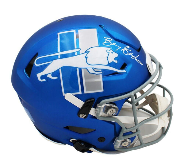 A Detroit Lions Speed Flex Authentic Alternate Blue 2023 NFL Helmet hand signed by Barry Sanders. The item and signature are in excellent condition. Barry is a 10x Pro Bowler, 10x All-Pro, 4x Rushing Champion, and NFL MVP. AUTHENTICATION: The item is accompanied by a Schwartz Sports Certificate of Authenticity - Schwartz Sports Serial Numbered & Databased Hologram.