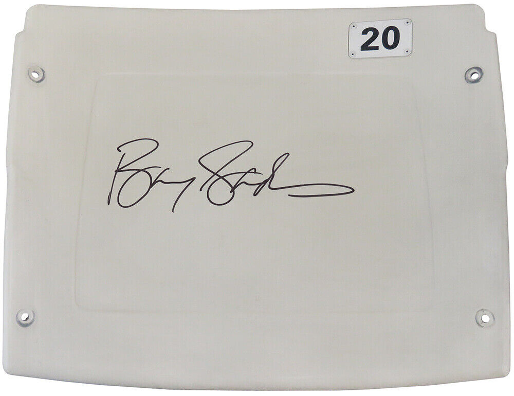 Barry Sanders signed Detroit Silverdome white #20 actual stadium seatback. Item comes with a Schwartz Sports Memorabilia tamper-proof numbered hologram and Certificate of Authenticity which can be verified online.
