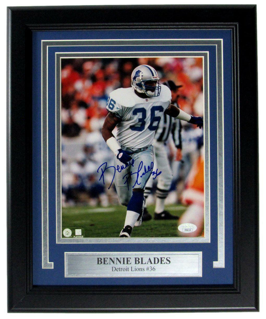 Benny Blades Detroit Lions Signed/Autographed 8x10 Photo Framed. The outer frame size is 13 inches x 16 inches. This photo is authenticated by JSA and includes their Tamper-proof Sticker and Certificate of Authenticity.