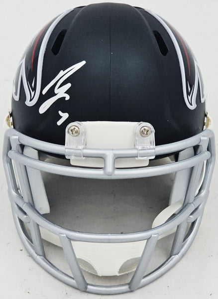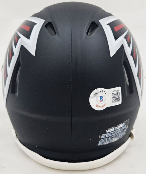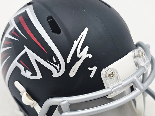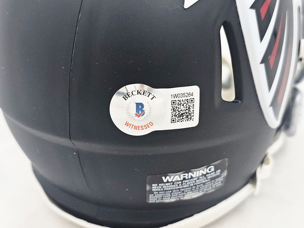 This is an Atlanta Falcons Black Speed Mini Helmet that has been hand signed by Bijan Robinson. This item has been witnessed and certified authentic by Beckett Authentication (BAS) and comes with their tamper-proof witness sticker.