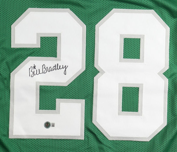 Custom on-field style jersey. Everything is sewn on, size XL. Hand-signed by Bill Bradley.The lot / autograph(s) includes an official Beckett Authentication Services serially numbered hologram and QR Code card for authenticity purposes. The signing of this item was witnessed by Beckett.Authentication: Beckett Hologram with QR Code card