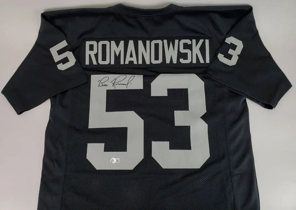 Custom on-field style jersey. Everything is sewn on, size XL. Has been hand-signed by Bill Romanowski.The lot / autograph(s) includes an official Beckett Authentication Services serially-numbered hologram and QR Code Card for authenticity purposes. Authentication: Beckett Hologram & QR Code Card