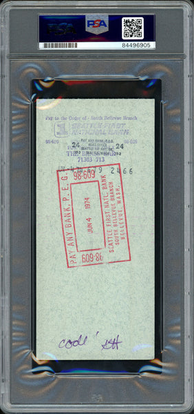 This is a 3x6 Check that has been hand signed by Bill Russell. It has been certified authentic by PSA/DNA and comes encapsulated in their tamper-proof holder.