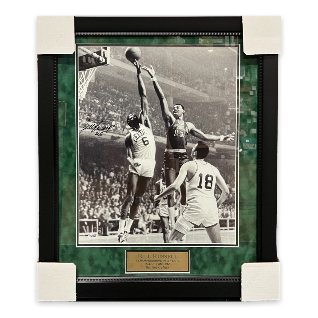 This 16x20 photo custom framed to 20x24 has been personally hand-signed by Bill Russell of the Boston Celtics100% Authentic. Certificate of Authenticity by PSA/DNAExact location of signature may vary