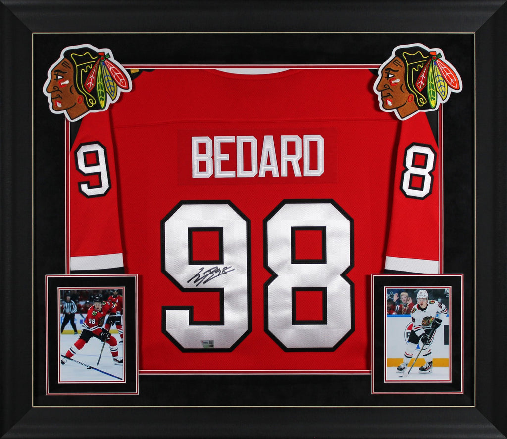 Blackhawks Connor Bedard Signed Red Fanatics Breakaway Framed Jersey Fanatics