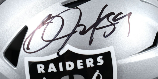 This is a Bo Jackson of the Raiders Autographed Riddell football full size Speed Flex Authentic helmet. This item has a Beckett Witnessed Authentication, which comes with a numbered sticker hologram and a QR code for verification. You can view this item on the Beckett Authentication website and it shows when and where the item was signed. It was signed either at a public autograph appearance or a private signing. This is a stock photo of the item. Although you may not receive this exact item, the item you receive is virtually identical, brand new, and in great shape. *Autograph location may vary* This is a Bo Jackson of the Raiders Autographed Riddell football full size Speed Flex Authentic helmet. This item has a Beckett Witnessed Authentication, which comes with a numbered sticker hologram and a QR code for verification. You can view this item on the Beckett Authentication website and it shows when and where the item was signed. It was signed either at a public autograph appearance or a private signing. This is a stock photo of the item. Although you may not receive this exact item, the item you receive is virtually identical, brand new, and in great shape. *Autograph location may vary*