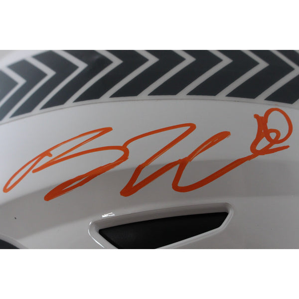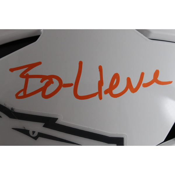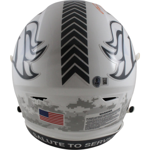The number in the listing title is just an inventory sku for our records and is not the authentication number. This is a stock photo, unless otherwise noted. This is a Denver Broncos Full Size Authentic 2024 Salute to Service SpeedFlex Helmet that was personally autographed by Bo Nix, includes "BoLieve" inscription. Includes a certificate of authenticity from Beckett Authentication Services (BAS) and Denver Autographs.