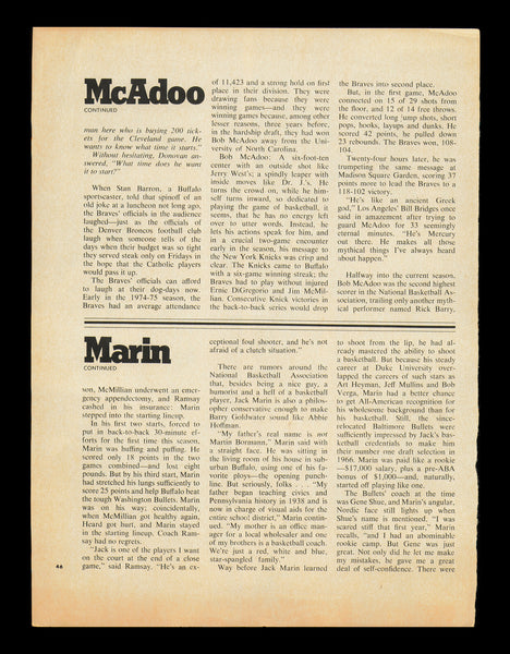 This is an 8x11 Magazine Photo that has been hand signed by Bob McAdoo & Jack Marin. There are creases in the item as shown. This item is guaranteed to pass any third party authentication company including Beckett, PSA/DNA, & JSA authentication.