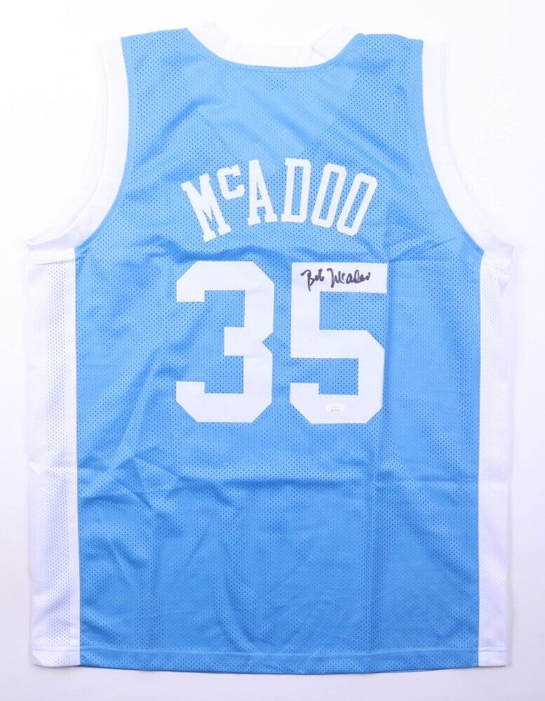 This autographed custom on-court style adult XL jersey has been personally hand-signed by Bob McAdoo of the North Carolina Tar Heels.This autograph is certified by James Spence Authentication (JSA) Witness Certification. That means that a Beckett representative was present when this item was signed. It comes with the numbered authentication hologram with a QR code card that verifies the authentication on the Beckett website.Custom on-court style jerseys are a more affordable option for autograph seekers. These jerseys do not have any brand name or tags and are made in the Philippines. They feature stitched on names and numbers and are made to look very similar to the on-field jerseys that the players wear. These custom jerseys are very commonly used in the memorabilia industry.