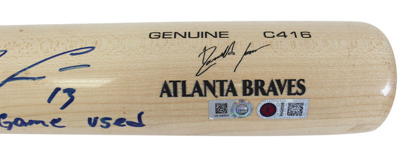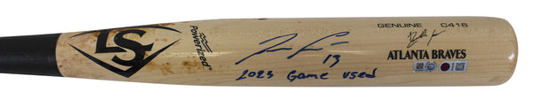 This Autographed 2023 Game Used Broken Louisville Slugger C416 Player Model Baseball Bat with the inscription of "2023 Game Used" has been Personally Signed by Ronald Acuna Jr. of the Atlanta Braves. This item is 100% Authentic to include a numbered hologram from MLB. The authenticity can be verified on MLB website.