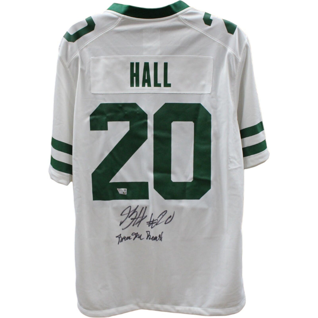 The number in the listing title is just an inventory sku for our records and is not the authentication number. The item pictured is a stock photo unless otherwise noted. This is a New York Jets White Nike size XL Jersey that was personally autographed by Breece Hall. Includes a certificate of authenticity from Fanatics Authentics (FAN) and Denver Autographs. This jersey does have some bleeding from the black ink going to the front side of the jersey. This is from the autograph bleeding through the jersey, this jersey may be ideal for framing. FREE SHIPPING within the USA on orders over $10!