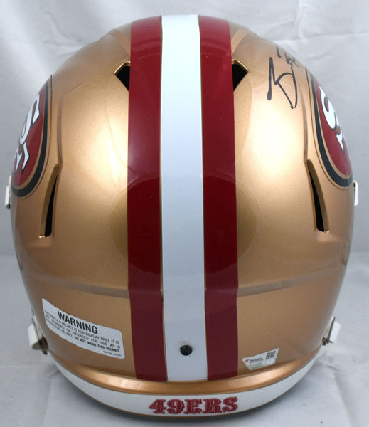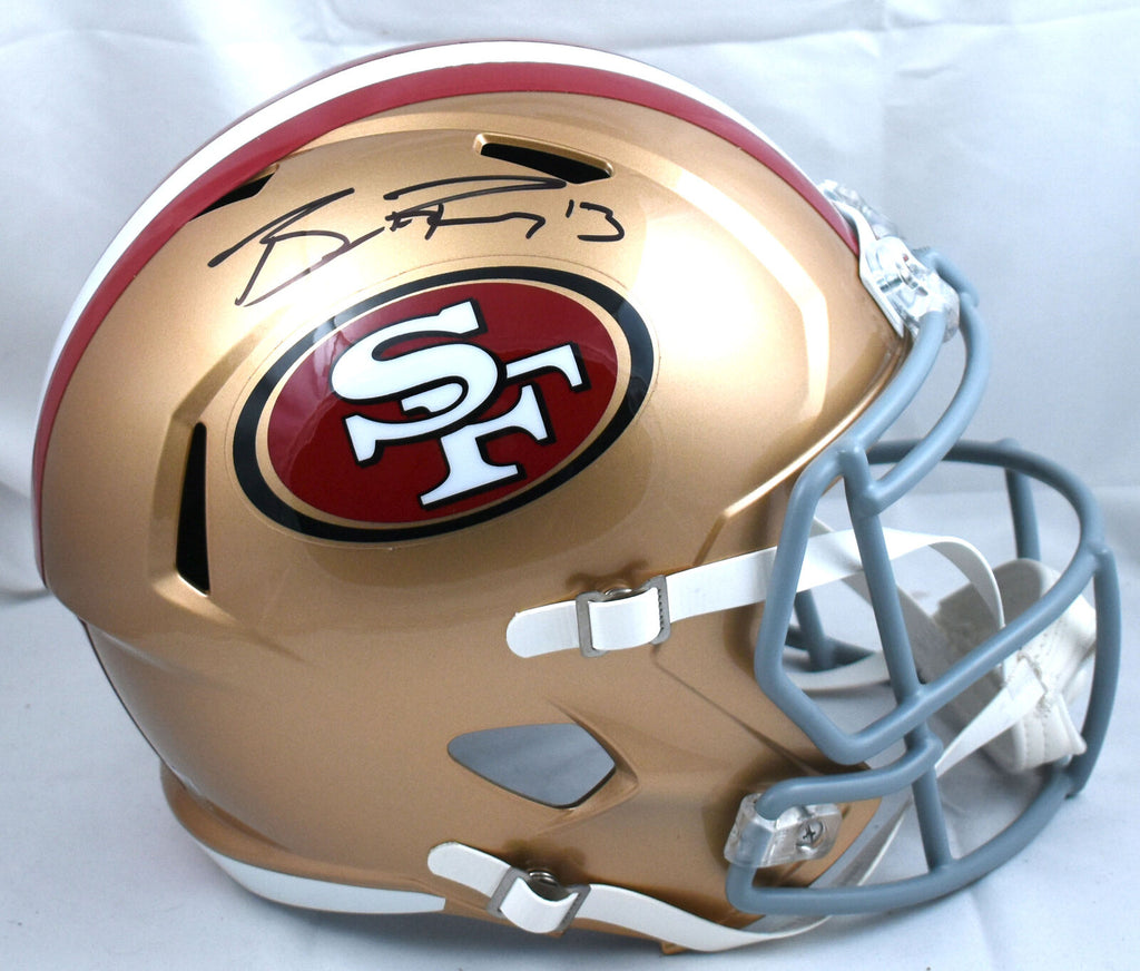 This is a hand autograph of Brock Purdy of the San Francisco 49ers on a Riddell Football Full Size Speed Replica Helmet. This item has a Fanatics Authentication, which comes with a Fanatics numbered sticker hologram and a QR code for verification. You can view this item on Fanatics Authentication website and it shows when and where the item was signed. It was signed either at a public autograph appearance or a private signing. This is a stock photo of the item. Although you may not receive this exact item, the item you receive is virtually identical and brand new in great shape. This is a hand autograph of Brock Purdy of the San Francisco 49ers on a Riddell Football Full Size Speed Replica Helmet. This item has a Fanatics Authentication, which comes with a Fanatics numbered sticker hologram and a QR code for verification. You can view this item on Fanatics Authentication website and it shows when and where the item was signed. It was signed either at a public autograph appearance or a private signing. This is a stock photo of the item. Although you may not receive this exact item, the item you receive is virtually identical and brand new in great shape.