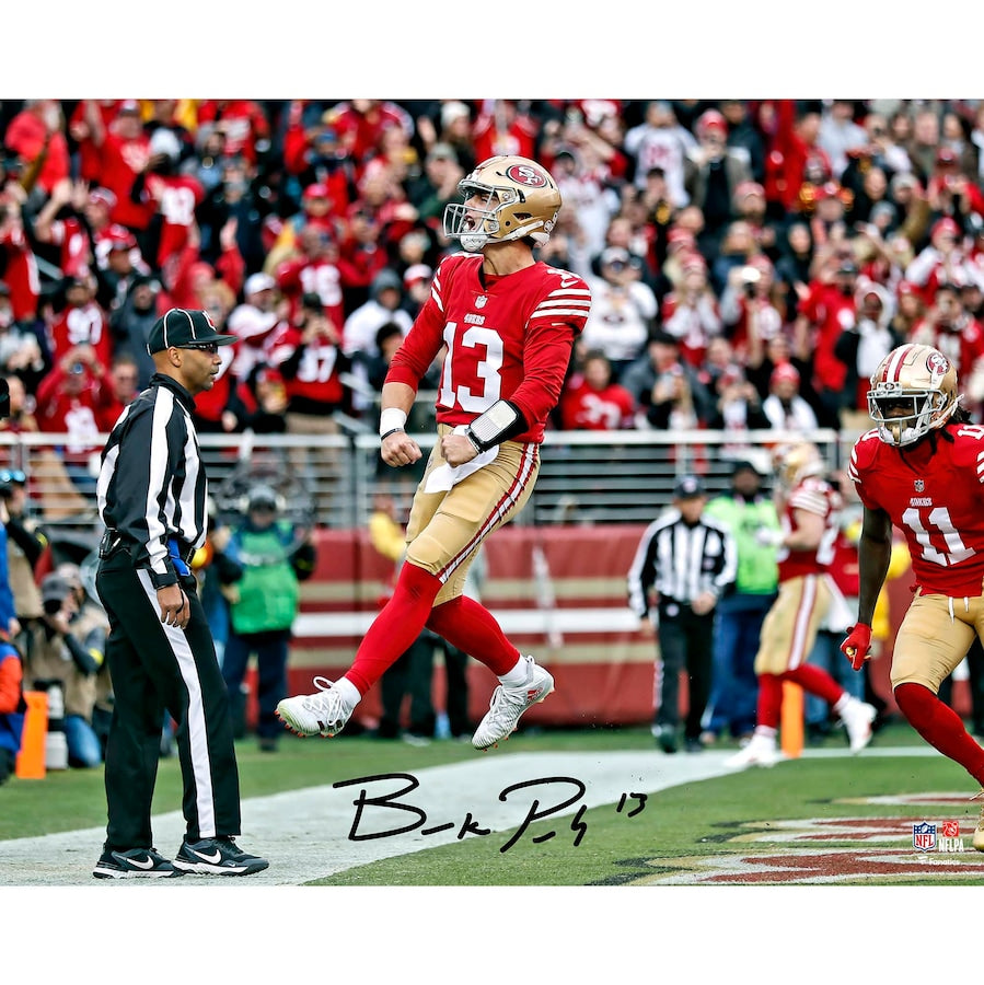 Autographed by Brock Purdy, this 16" x 20" Screaming Photograph is ready to enhance your collection of San Francisco 49ers memorabilia. It showcases the 49ers' star rookie QB celebrating a touchdown in the endzone. This photo also features Brock Purdy's unique signature to provide the perfect collectible for San Franciso fans.