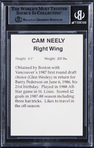 This Autographed 1988 Bruins Sports Action #16 Card has been Personally Signed by Cam Neely of the Boston Bruins. This item is 100% Authentic, it comes slabbed and authenticated by Beckett Authentication Services. The authenticity can be verified on Beckett Authentication Services website.