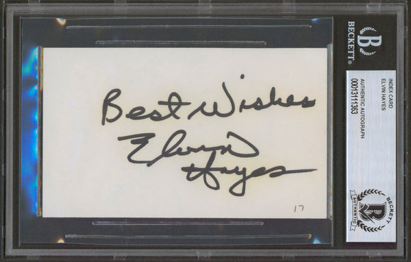 This Autographed 3x5 Index Card with the inscription of "Best Wishes" has been Personally Signed by Elvin Hayes of the Washington Bullets. This item is 100% Authentic, it comes slabbed and authenticated by Beckett Authentication Services. The authenticity can be verified on Beckett Authentication Services website.