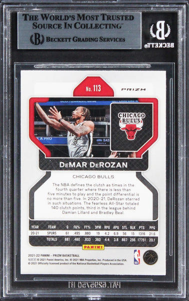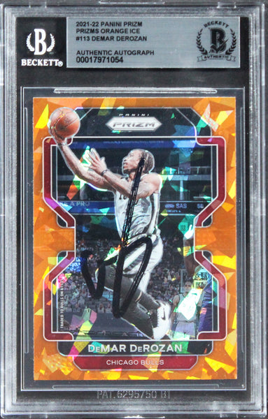 Bulls DeMar DeRozan Signed 2021 Panini Prizm Orange Ice #113 Card BAS Slabbed