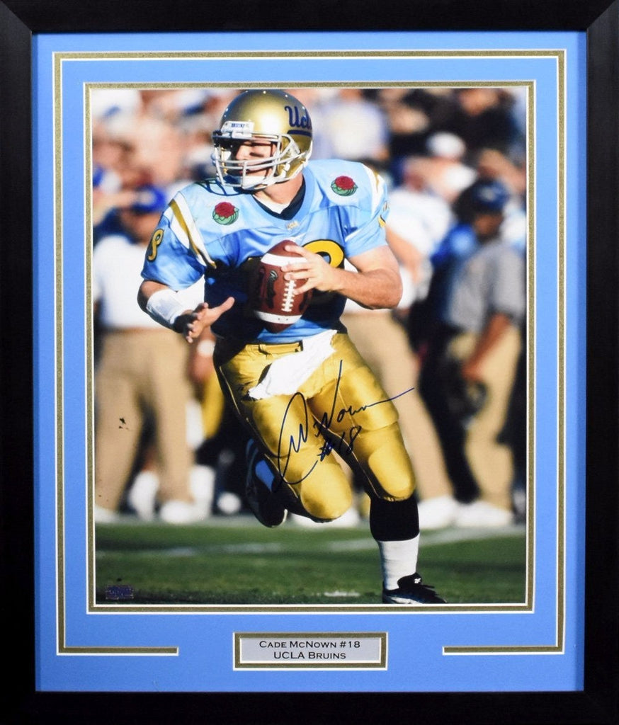 Cade McNown, former All-American quarterback for the UCLA Bruins, has hand signed this 16x20 photo at a private signing. It comes professionally framed in a black wood frame and double matted in UCLA Bruins colors. This item comes with a certificate of authenticity (COA) from Signature Sports Marketing, one of the leaders in the industry. You will receive a paper COA along with matching serial-numbered holograms.Item pictured may not be the exact item you will receive. It will be similar quality, and we guarantee your satisfaction.