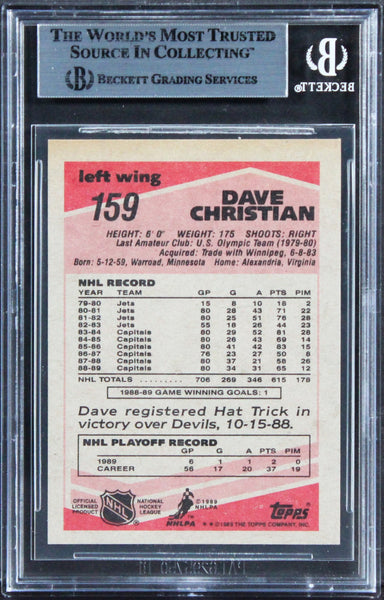 This Autographed 1989 Topps #159 Card has been Personally Signed by Dave Christian of the Washington Capitals. This item is 100% Authentic, it comes slabbed and authenticated by Beckett Authentication Services. The authenticity can be verified on Beckett Authentication Services website.
