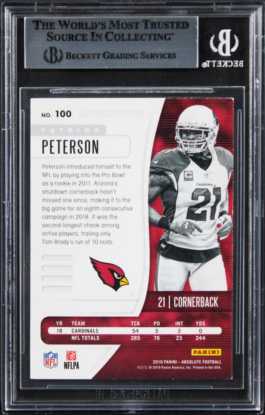 This Autographed 2019 Absolute Blue #100 Card has been Personally Signed by Patrick Peterson of the Arizona Cardinals. This item is 100% Authentic, it comes slabbed and authenticated by Beckett Authentication Services. The authenticity can be verified on Beckett Authentication Services website.