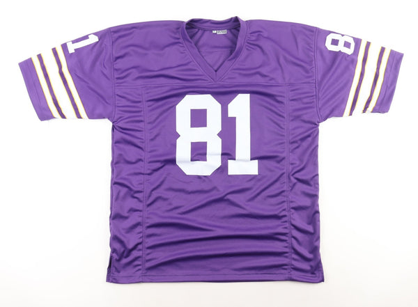 Custom on-field style jersey. Everything is sewn on, size XL. Hand-signed and inscribed in black felt-tip pen by Carl Eller (HOF). The lot / autograph(s) includes an official James Spence Authentication (JSA) hologram and scannable QR Code card for authenticity purposes. The signing of this item was witnessed by JSA.Authentication: JSA Hologram with QR Code card