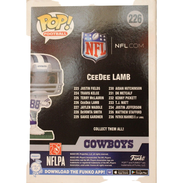 The number in the listing title is just an inventory sku for our records and is not the authentication number. The item pictured is a stock photo unless otherwise noted. This is a Dallas Cowboys Fanatics #226 Funko Pop! that was personally autographed by CeeDee Lamb. Includes a certificate of authenticity from Fanatics Authentics (FAN) and Denver Autographs.FREE SHIPPING within the USA on orders over $10!