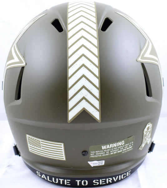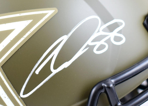 CeeDee Lamb Autographed Dallas Cowboys F/S Salute to Service Speed Helmet - Fanatics *White This is a hand autograph of CeeDee Lamb of the Dallas Cowboys on a Riddell Football Full Size Saltue to Service Speed Replica Helmet. This item has a Fanatics Authentication, which comes with a numbered sticker hologram and a QR code for verification. You can view this item on the Fanatics Authentication website and it shows when and where the item was signed. It was signed either at a public autograph appearance or a private signing. This is a stock photo of the item. Although you may not receive this exact item, the item you receive is virtually identical and brand new in great shape.
