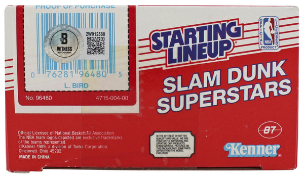 This Autographed Sealed 1989 Starting Lineup Slam Dunk Superstars has been Personally Signed by Larry BIrd of the Boston Celtics. This item is 100% Authentic to include a Certificate of Authenticity (COA) / hologram by Beckett Authentication Services. This is a BAS Witnessed Protection Program item which means a Beckett Authentication Service representative was present when this item was being signed. The authenticity can be verified on Beckett Authentication Services website. Please refer to photos for condition prior to purchase.
