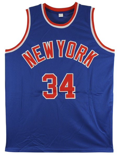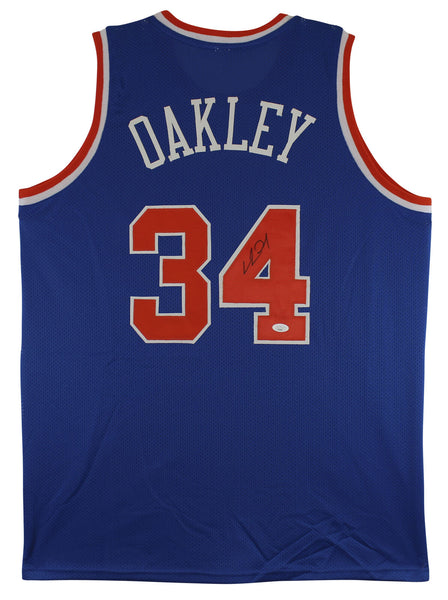 This Autographed Blue Pro Style Jersey has been Personally Signed by Charles Oakley of the New York Knicks. This item is 100% Authentic to include a Certificate of Authenticity (COA) / hologram by JSA. We have multiples of this same item. While the photographs are representative of this item, the size, placement and strength of the signature may vary. Each item is hand signed, therefore, each autograph is unique. This is a X-Large sized, non-branded, custom-stitched Jersey.