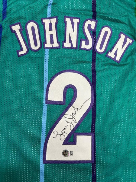 Custom Replica Jersey (XL) hand signed by Charlotte Hornets Forward LARRY JOHNSON. The signature is in Black sharpie. This item was signed at a signing with us and would make a great addition to any Hornets collection! The jersey size is XL and All letters and numbers are sewn in. This autograph is guaranteed to be 100% authentic and will include a COA from JSA authentication.