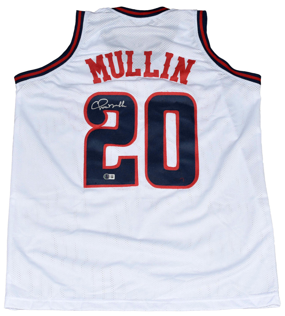 Chris Mullin, former All-American for the St John's Red Storm, has hand signed this white custom jersey at a private signing. Jersey is size XL and all letters/numbers are sewn-on. This item is authenticated by Beckett Authentication Services and was signed in the presence of one of their representatives. Their tamper-evident hologram featuring a QR code and serial number is on the item. The authenticity can be verified online by entering the serial number or scanning the QR code.Item pictured may not be the exact item you will receive. It will be similar quality, and we guarantee your satisfaction.