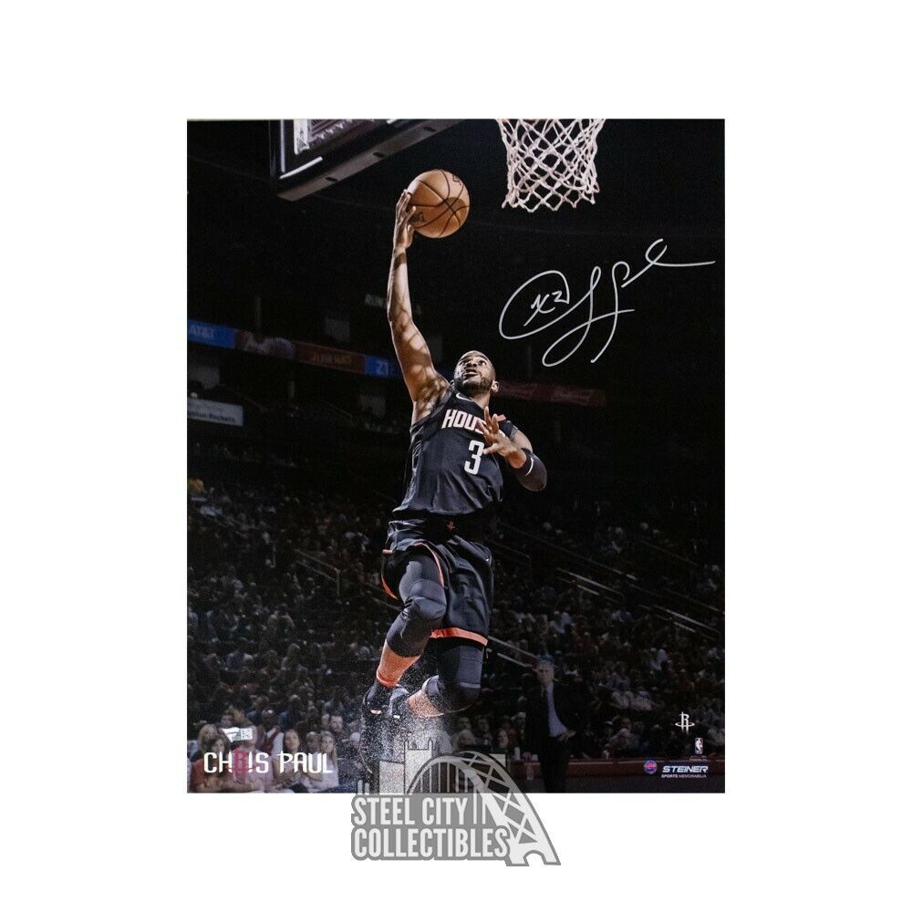 Chris Paul Autographed Houston Rockets 16x20 Photo - Fanatics (Black Jersey) This Chris Paul autographed Houston Rockets 16x20 photo is authenticated by Fanatics.