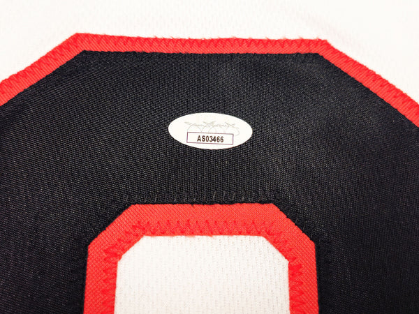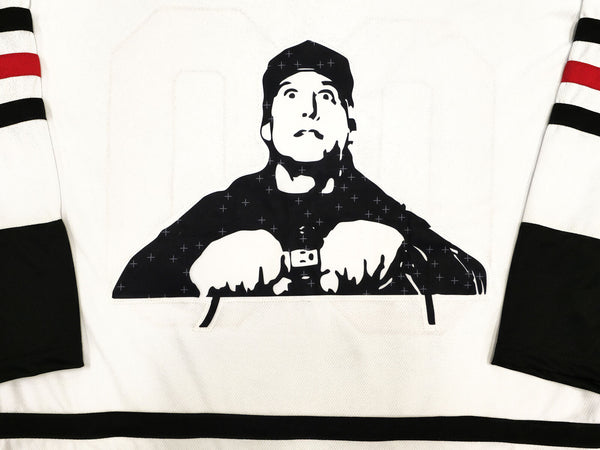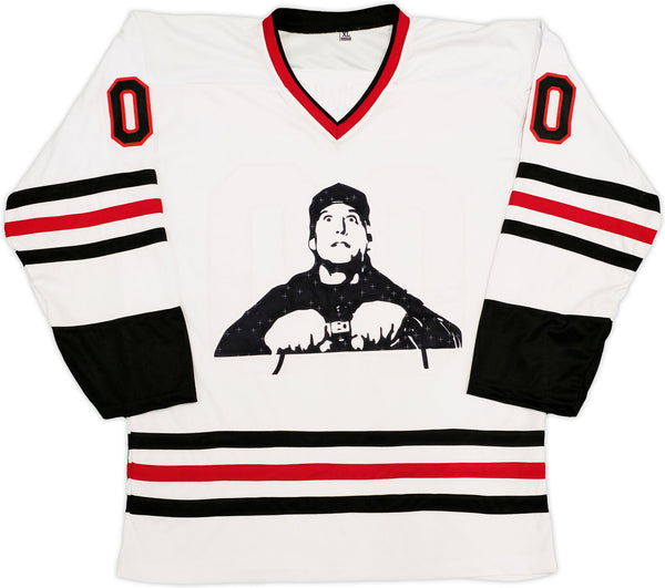 This is a White Jersey that has been hand signed by Chevy Chase. This is a custom jersey with no name brand. The approximate size is XL. It has nice sewn in name and numbers. This item has been certified authentic by JSA and comes with their tamper-proof sticker and matching certificate of authenticity.