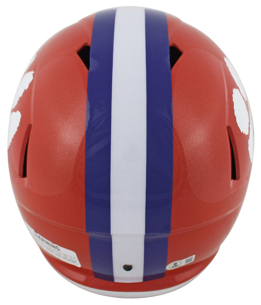 This Autographed w/ White Signature Riddell Full Size Speed Rep Helmet has been Personally Signed by Brian Dawkins of the Clemson Tigers. This item is 100% Authentic to include a hologram by Beckett Authentication Services. This item will come with an affixed Beckett Authentication Services (BAS) authentication sticker, which includes a scannable QR code to verify authenticity. Please note that Beckett no longer provides serial-numbered COA cards, and the attached BAS sticker will serve as the complete authentication for this item. This is a BAS Witnessed Protection Program item which means a Beckett Authentication Service representative was present when this item was being signed. We conducted an autograph signing with Brian Dawkins where multiples of the same item were signed. While the photographs are representative of this item, the size, placement and strength of the signature may vary. Each item is hand signed, therefore, each autograph is unique. This item can be verified through BAS Witnessed.