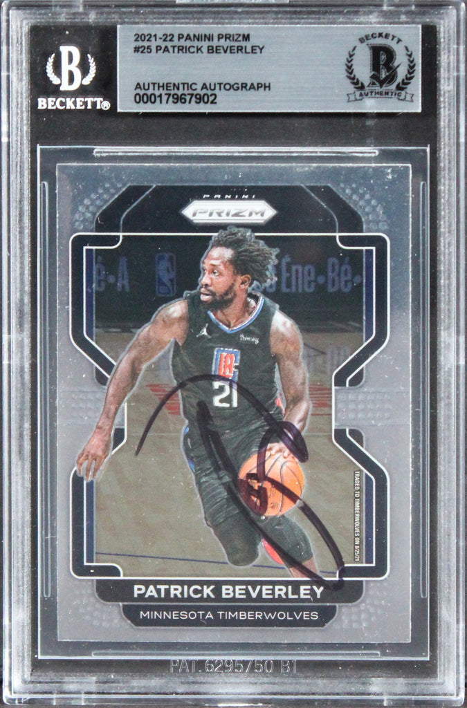 This Autographed 2021 Panini Prizm #25 Card has been Personally Signed by Patrick Beverley of the Los Angeles Clippers. This item is 100% Authentic, it comes slabbed and authenticated by Beckett Authentication Services. The authenticity can be verified on Beckett Authentication Services website.