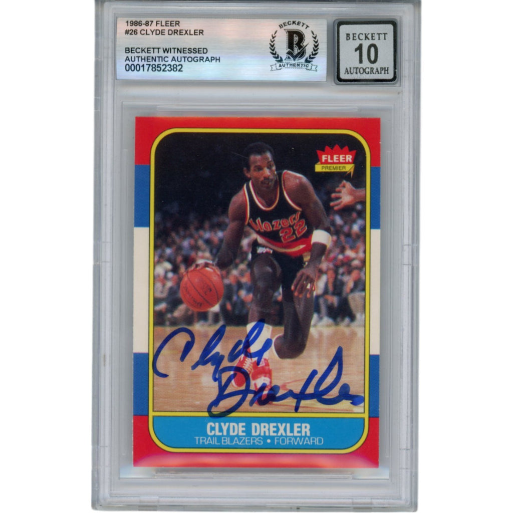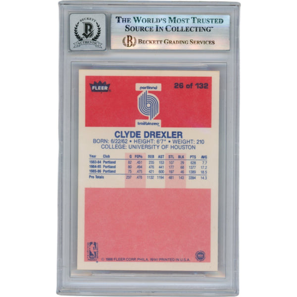 Clyde Drexler Autographed 1986 Fleer #26 Slabbed Trading Card Beckett 50669