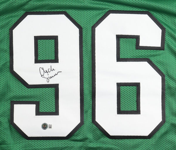 Custom on-field style jersey. Everything is sewn on, size XL. Hand-signed by Clyde Simmons.The lot / autograph(s) includes an official Beckett Authentication Services serially numbered hologram and QR Code card for authenticity purposes. The signing of this item was witnessed by Beckett.Authentication: Beckett Hologram with QR Code card