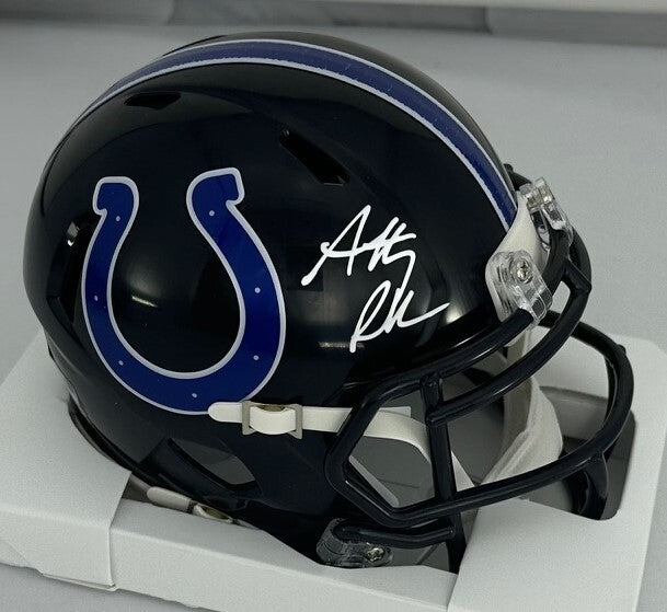 Riddell Speed Mini Helmet hand signed by Indianapolis Colts Quarterback ANTHONY RICHARDSON. The signature is in White paint pen. This would make a great addition to any Colts collection.This item was signed at a private signing with us. This item is guaranteed to be 100% authentic and will include a COA hologram from Fanatics Authentication.