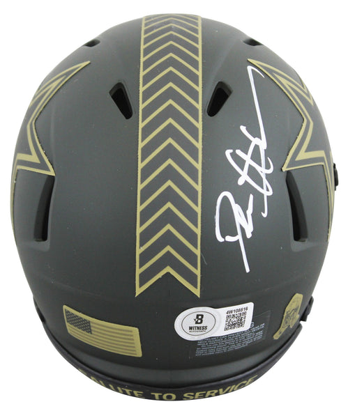 This Autographed Alternate 2025 Salute to Service IV Speed Mini Helmet has been Personally Signed by Deion Sanders of the Dallas Cowboys. This item is 100% Authentic to include a hologram by Beckett Authentication Services. This item will come with an affixed Beckett Authentication Services (BAS) authentication sticker, which includes a scannable QR code to verify authenticity. Please note that Beckett no longer provides serial-numbered COA cards, and the attached BAS sticker will serve as the complete authentication for this item. This is a BAS Witnessed Protection Program item which means a Beckett Authentication Service representative was present when this item was being signed. The authenticity can be verified on Beckett Authentication Services website.