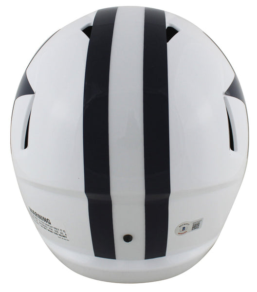 This Autographed 1960-63 Throwback Full Size Speed Rep Helmet has been Personally Signed by Roger Staubach of the Dallas Cowboys. This item is 100% Authentic to include a Certificate of Authenticity (COA) / hologram by Beckett Authentication Services. This is a BAS Witnessed Protection Program item which means a Beckett Authentication Service representative was present when this item was being signed. We conducted an autograph signing with Roger Staubach where multiples of the same item were signed. While the photographs are representative of this item, the size, placement and strength of the signature may vary. Each item is hand signed, therefore, each autograph is unique. This item can be verified through BAS Witnessed.