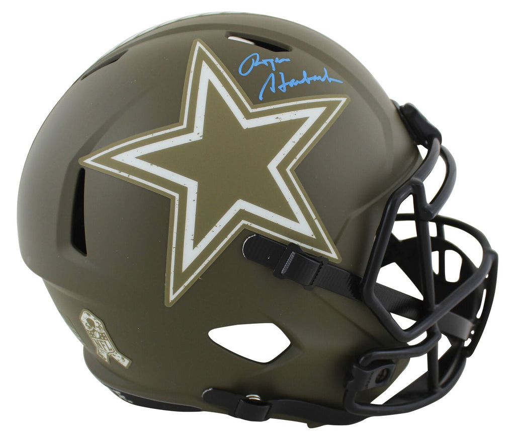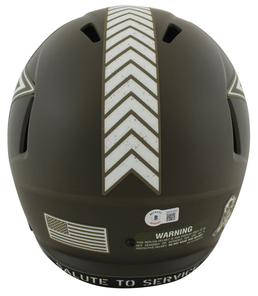 This Autographed Alternate Salute To Service Riddell Full Size Speed Rep Helmet has been Personally Signed by Roger Staubach of the Dallas Cowboys. This item is 100% Authentic to include a hologram by Beckett Authentication Services. This item may come with the new Beckett Authentication hologram that has a scannable QR code rather than the traditional COA. If you would like to have a COA, you are welcome to reach out to Beckett for a printed certification once you receive your item. This is a BAS Witnessed Protection Program item which means a Beckett Authentication Service representative was present when this item was being signed. We conducted an autograph signing with Roger Staubach where multiples of the same item were signed. While the photographs are representative of this item, the size, placement and strength of the signature may vary. Each item is hand signed, therefore, each autograph is unique. This item can be verified through BAS Witnessed.