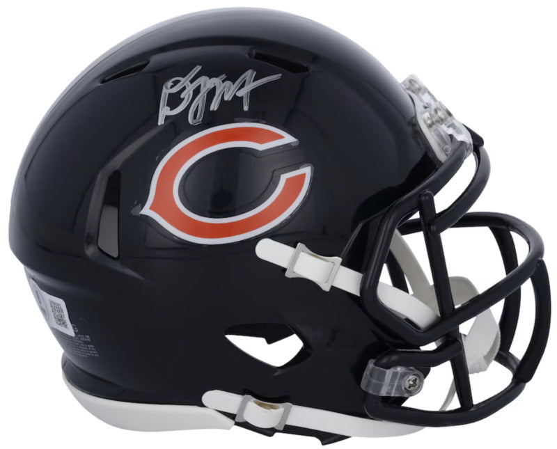 This Chicago Bears mini Speed helmet has been personally hand-signed by D.J. Moore. It comes with an individually numbered, tamper-evident hologram from Fanatics Authentic. To ensure authenticity, the hologram can be reviewed online. This process helps to ensure that the product purchased is authentic and eliminates any possibility of duplication or fraud.