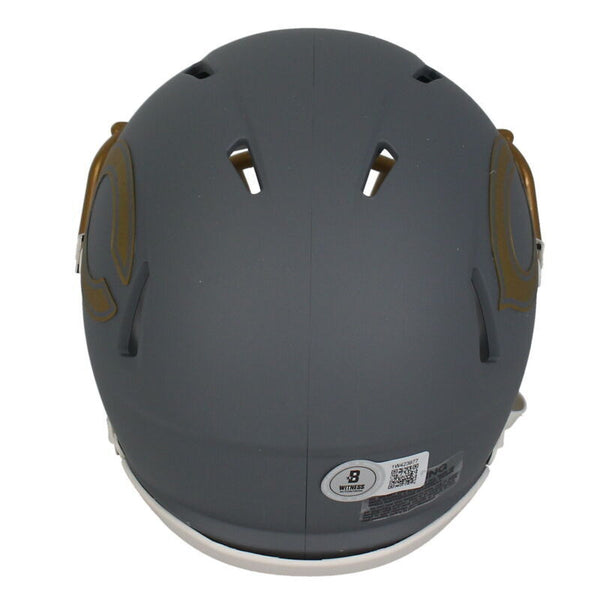 This chicago bears mini speed helmet has been personally hand-signed by d.j. moore. it comes with an individually numbered, tamper-evident hologram from beckett authentic. to ensure authenticity, the hologram can be reviewed online. this process helps to ensure that the product purchased is authentic and eliminates any possibility of duplication or fraud.