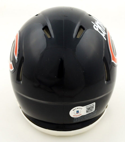 Riddell Chicago Bears Speed mini helmet. Hand-signed by D. J. Moore.The autograph includes an official Beckett Authentication Services serially numbered hologram and QR Code card for authenticity purposes. The signing of this item was witnessed by Beckett.Authentication: Beckett QR Code card