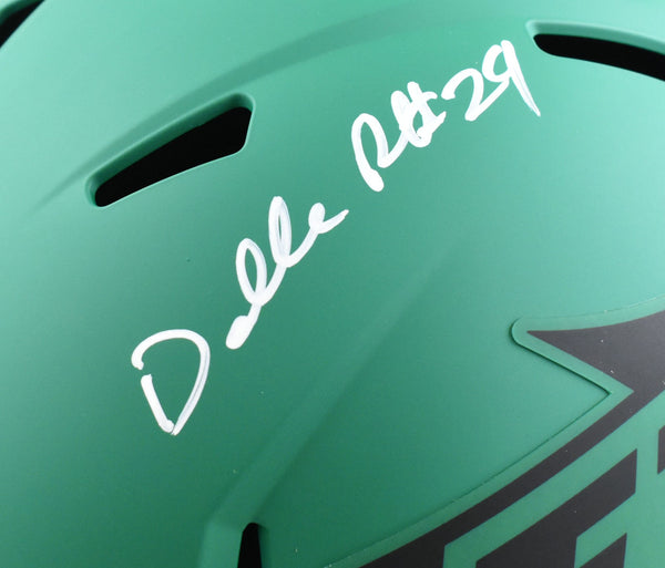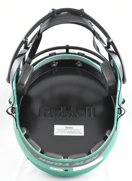 This is a Darrelle Revis of the New York Jets Autographed Riddell football full size Rave Speed Replica helmet. This item has a Beckett Witnessed Authentication, which comes with a numbered hologram and a QR code for verification. You can view this item on the Beckett Authentication website and it shows when and where the item was signed. It was signed either at a public autograph appearance or a private signing. This is a stock photo of the item. Although you may not receive this exact item, the item you receive is virtually identical, brand new, and in great shape. *Autograph location may vary* This is a Darrelle Revis of the New York Jets Autographed Riddell football full size Rave Speed Replica helmet. This item has a Beckett Witnessed Authentication, which comes with a numbered hologram and a QR code for verification. You can view this item on the Beckett Authentication website and it shows when and where the item was signed. It was signed either at a public autograph appearance or a private signing. This is a stock photo of the item. Although you may not receive this exact item, the item you receive is virtually identical, brand new, and in great shape. *Autograph location may vary*