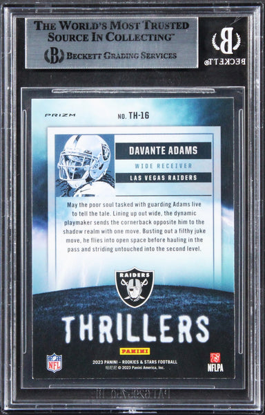 This Autographed 2023 Rookies & Stars Thrillers Silver #16 Card has been Personally Signed by Davante Adams of the Las Vegas Raiders. This item is 100% Authentic, it comes slabbed and authenticated by Beckett Authentication Services. The authenticity can be verified on Beckett Authentication Services website.